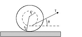 force T at an angle theta to the horizontal.