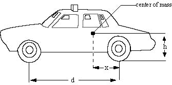 of the road and a distance d-x behind the front wheels. The front and