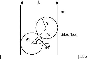 thin-walled tube of diameter L =[2+sqrt(2)]R. The tube and balls sit